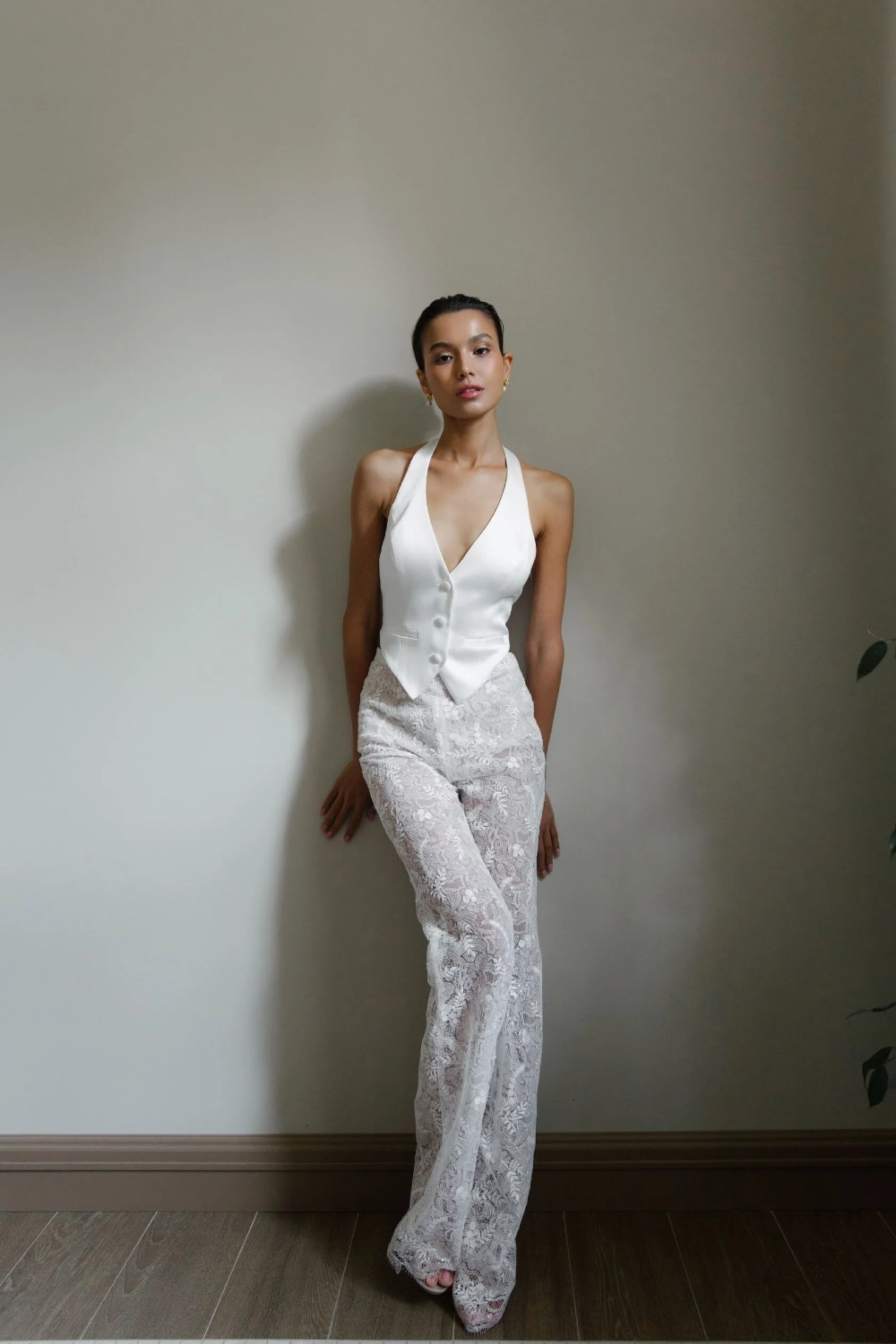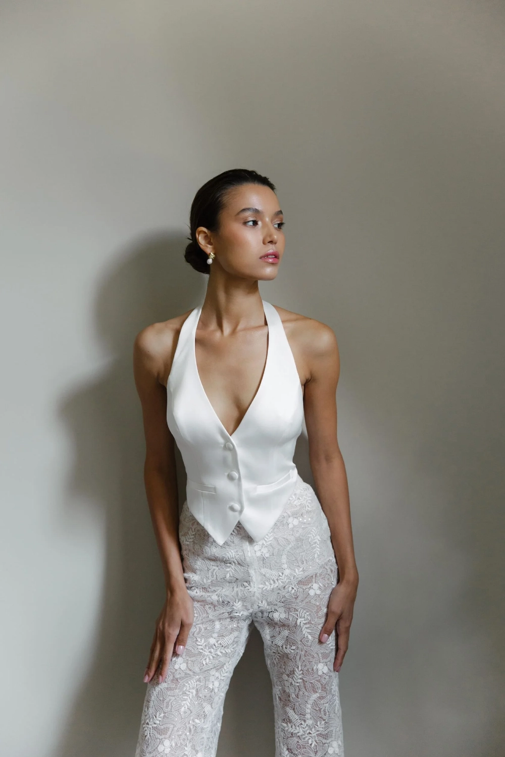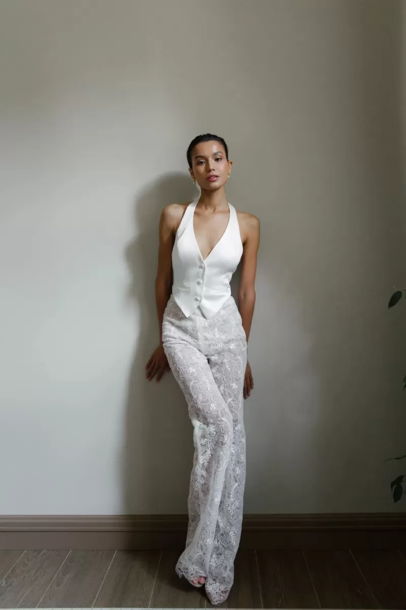 Vest of a fitted silhouette with a central three-button fastener. Along the front there are vertical reliefs passing through the center of the chest. There are imitation pockets in the waist area. It is recommended to combine the vest with Fisba trousers.