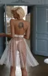 Wedding shirt for bride's morning. The skirt of the shirt is made of mesh with pearls.