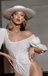 Body Sparkle made of incredibly sparkling fabric with voluminous sleeves and with interesting drapery on the front. This drapery in the form of a knot is complemented by a hand-sewn braid of rhinestones and beads.