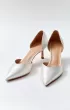 Classic semi-open pumps. Can be made of milky leather or powder or milk satin. The heel is additionally covered with fabric.